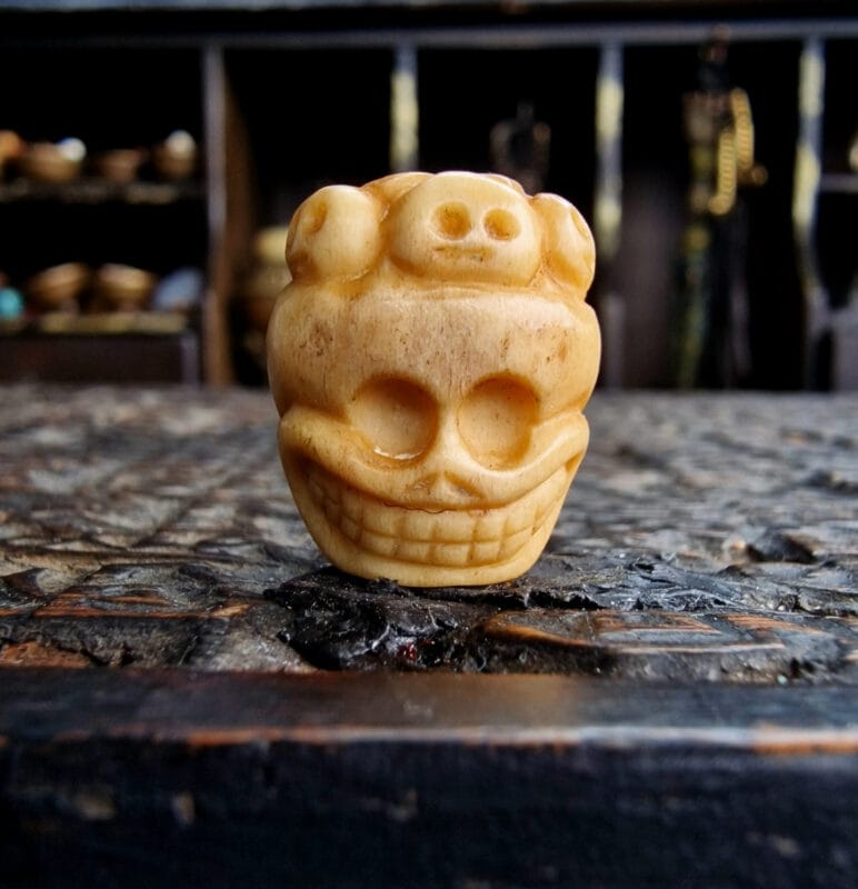 Kapala Calendar Amulet – Lama Skull Bone Hand Carved Ritual Piece
