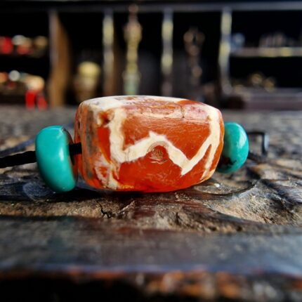 * Turquoise Guardians: The flanking turquoise beads serve as classic Tibetan protective talismans, balancing the fiery energy of the carnelian with the "Sky Stone's" healing and calming properties.