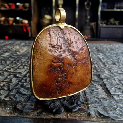 * The amulet exhibits a superb brown color and rich patina, a result of devotional handling and ritual use.