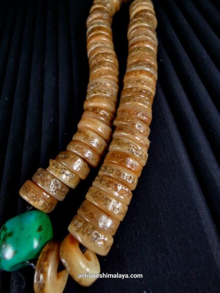 Introducing our remarkable wrist mala, a fusion of vintage banded agate mala beads bracelet and an enchanting antique dice ivory