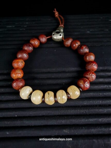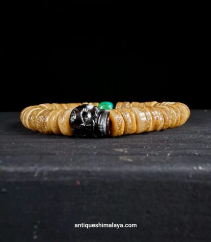 Mala beads bracelet Stunning Tibetan Kapala & Bodhi seed Bracelet / Lama skull, Monk carve Introducing our captivating unisex wrist mala,