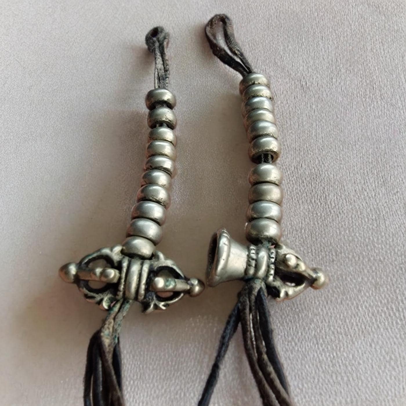 * This is a complete set of two Tibetan mala counters (chapshe), handcrafted from a special white bronze alloy.