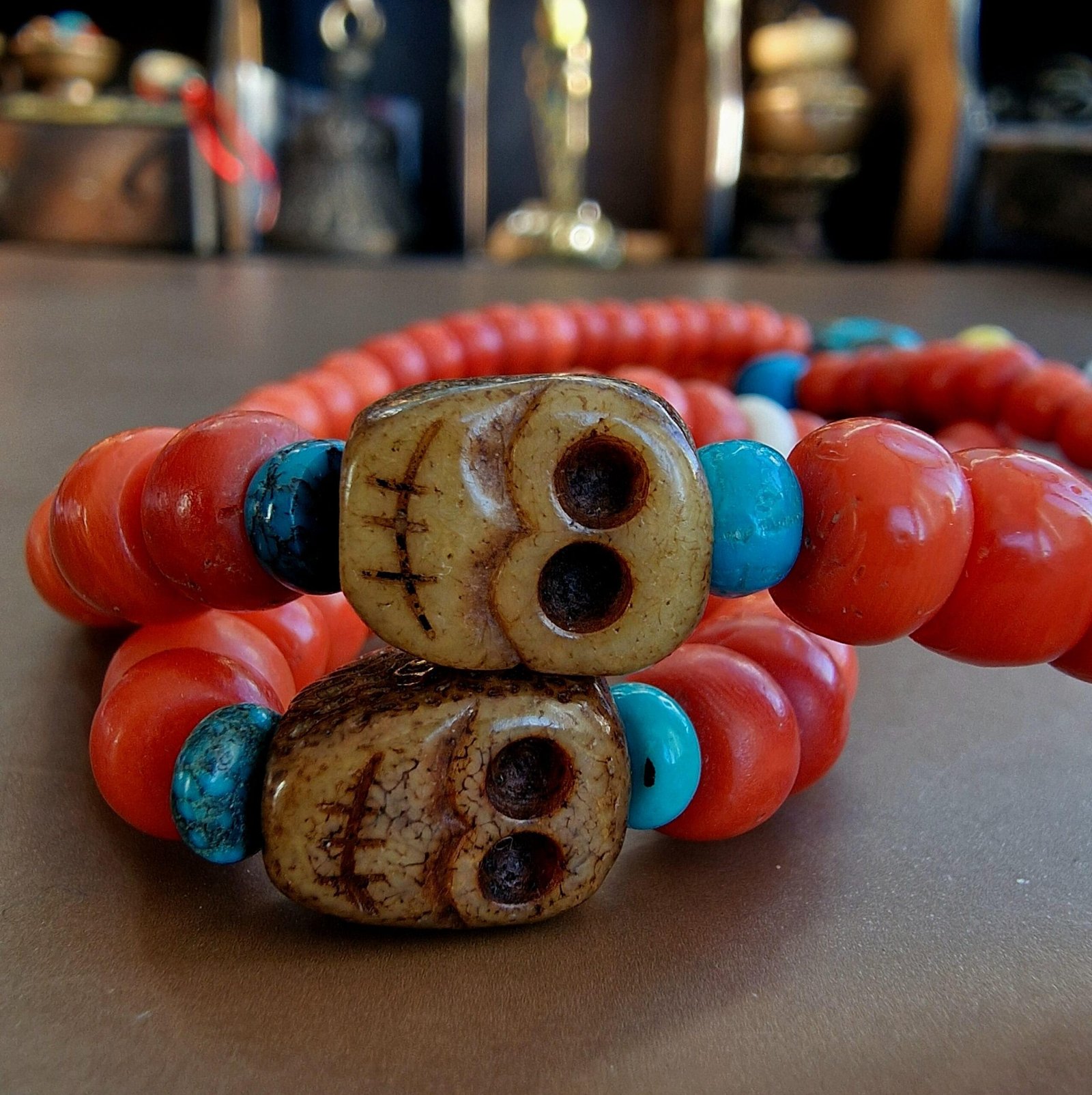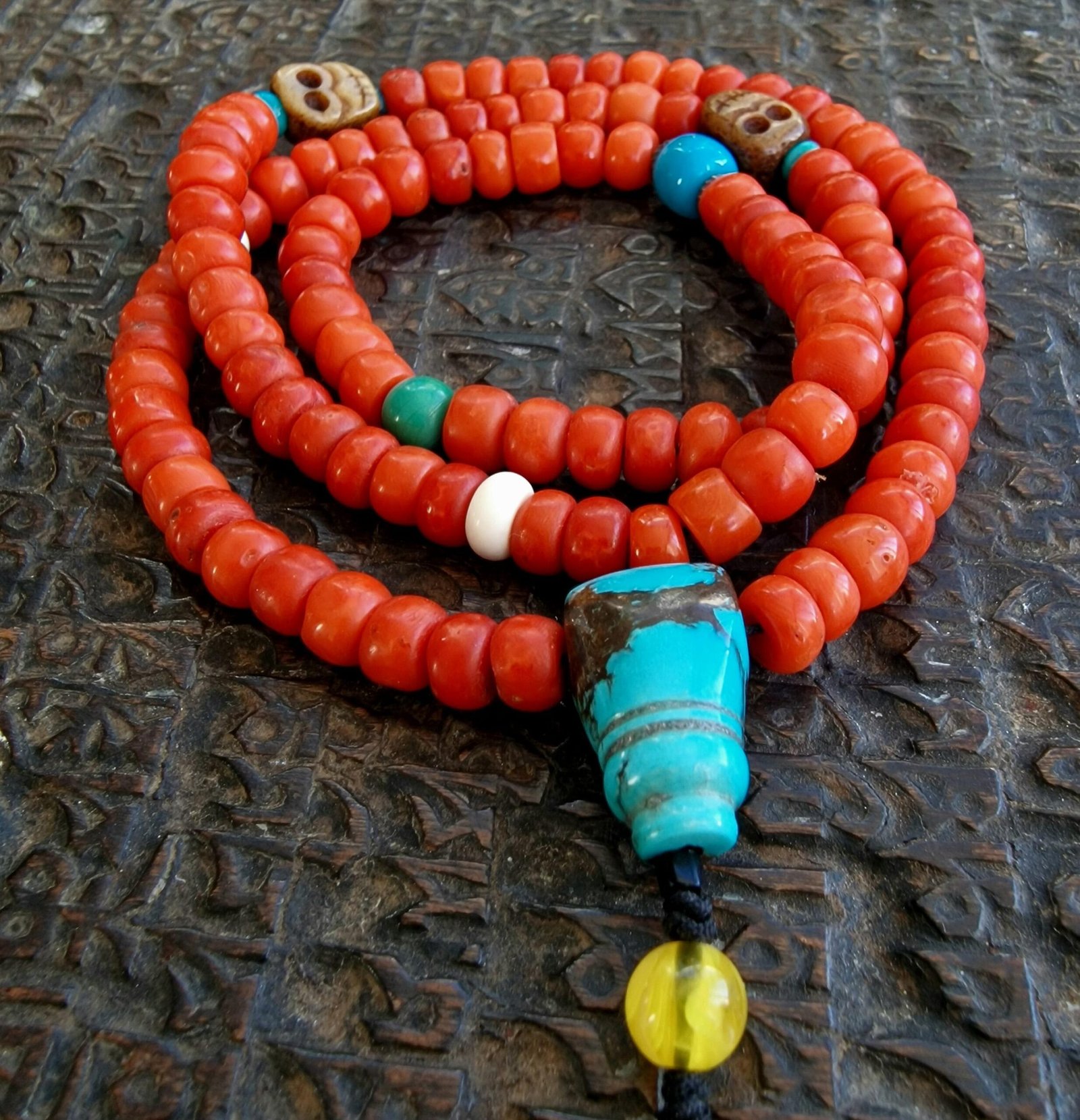 Antique Tibetan red Coral prayer beads Necklace | old bodhi mala 108, Tibetan Turquoise, Dzi beads, Kapala mala, Special Gifts