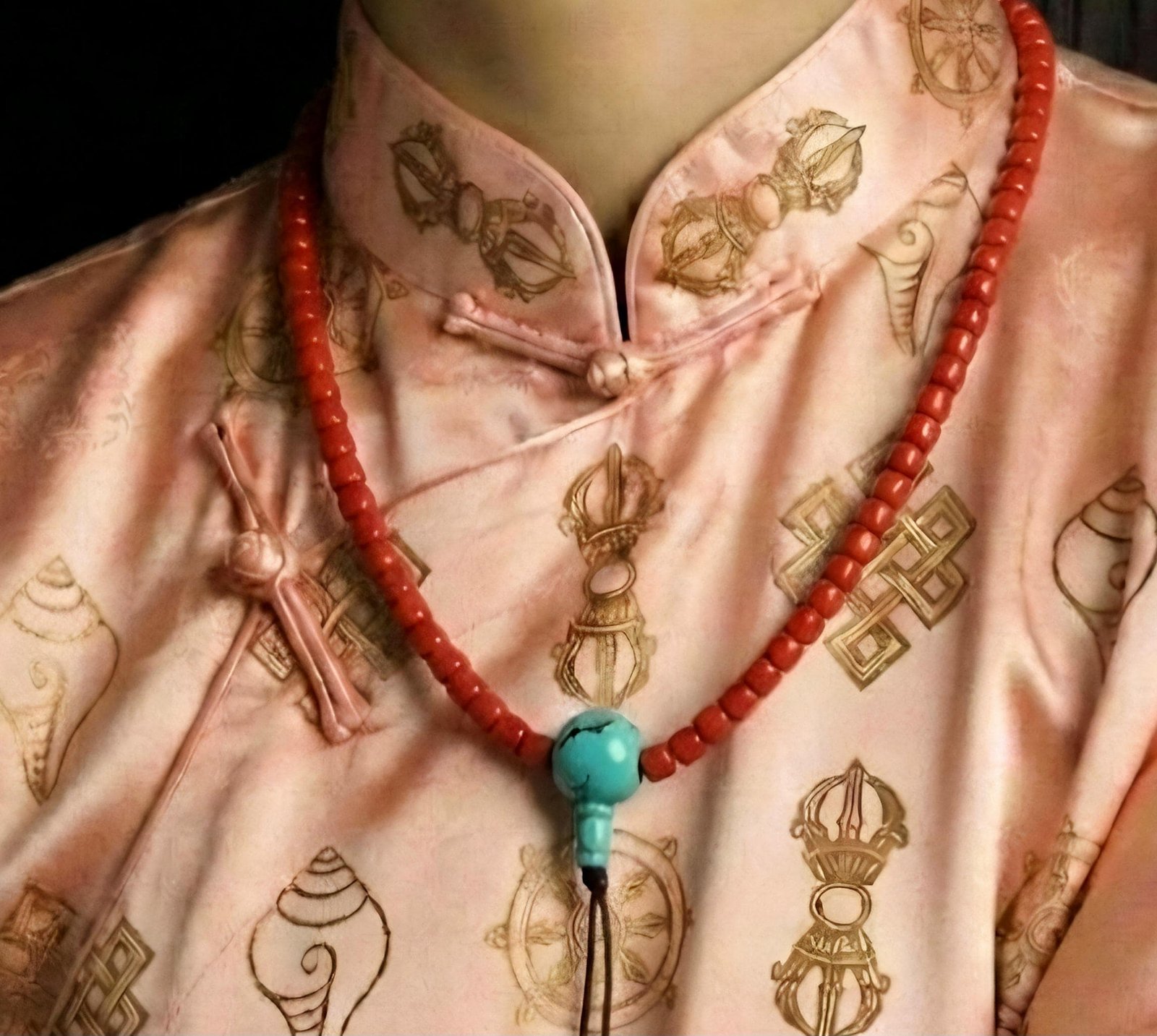 In Tibetan tradition, Red Coral represents life-force and the protection of the Buddha Amitabha, while Turquoise is a sacred stone of healing and spiritual protection. Together, they represent a harmony of fire and water—bolstering the wearer’s health and vitality while encouraging a calm, clear mind. This 108-bead mala serves as a vibrant talisman for merit and compassion.