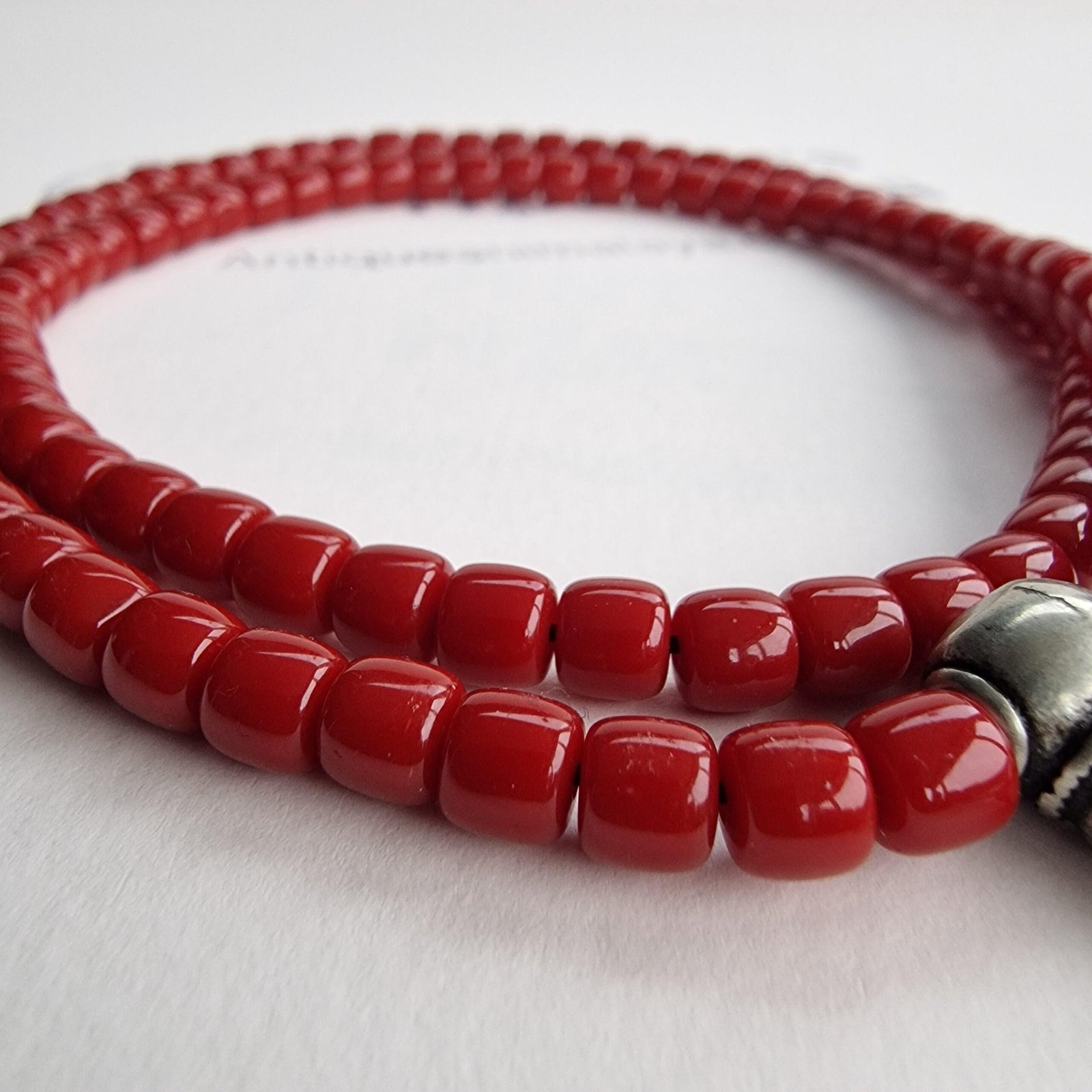 * Premium Beads: 108 hand-finished beads made from deep red coral (traditionally processed) for a smooth, high-quality feel.