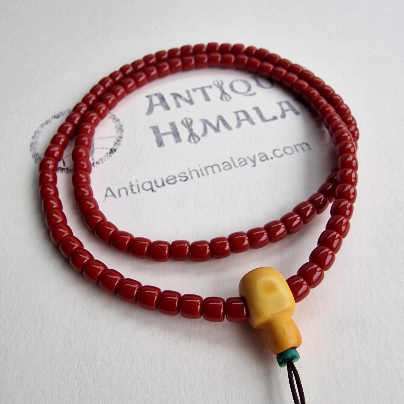 📿 Red Coral Style Tibetan Mala – 108 Prayer Beads