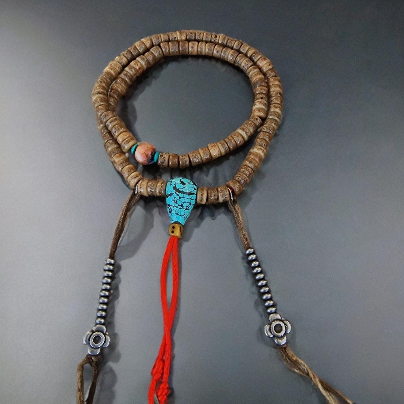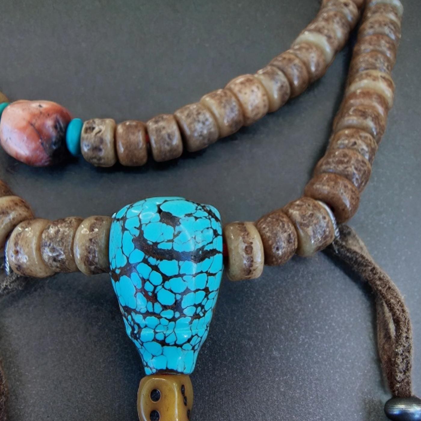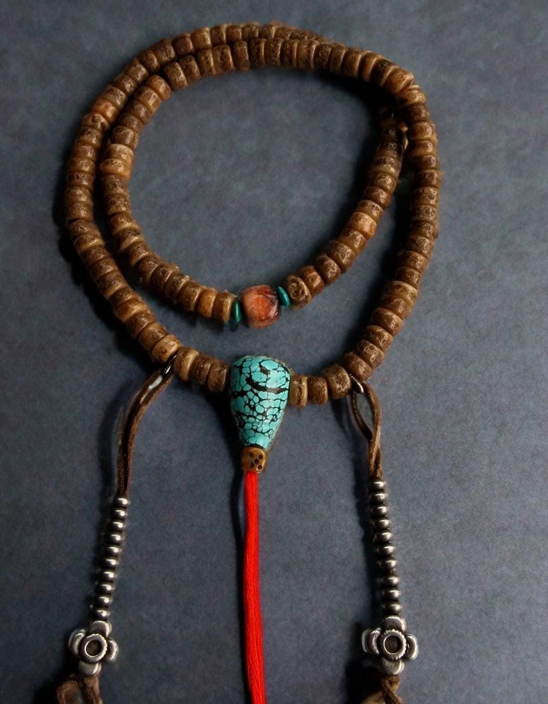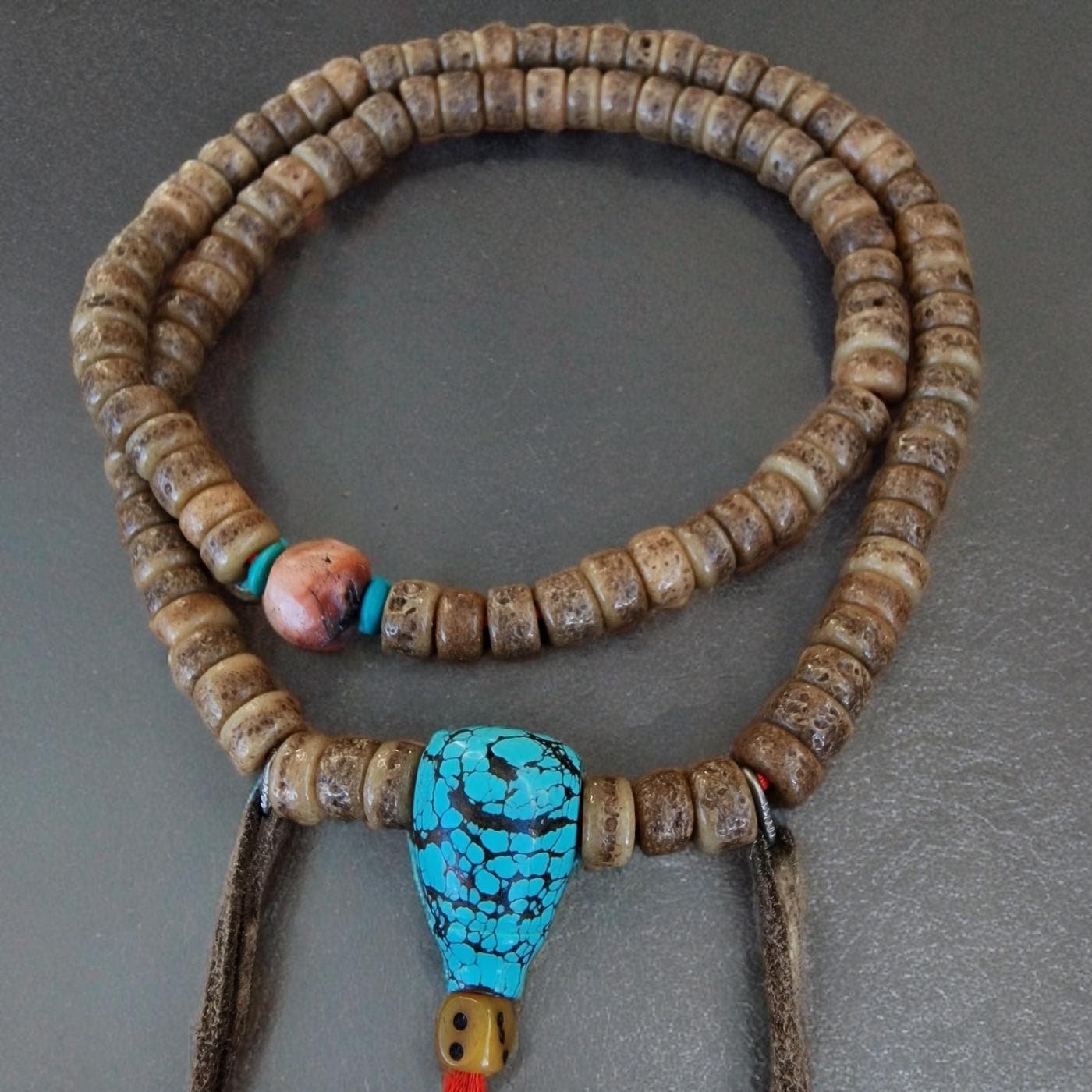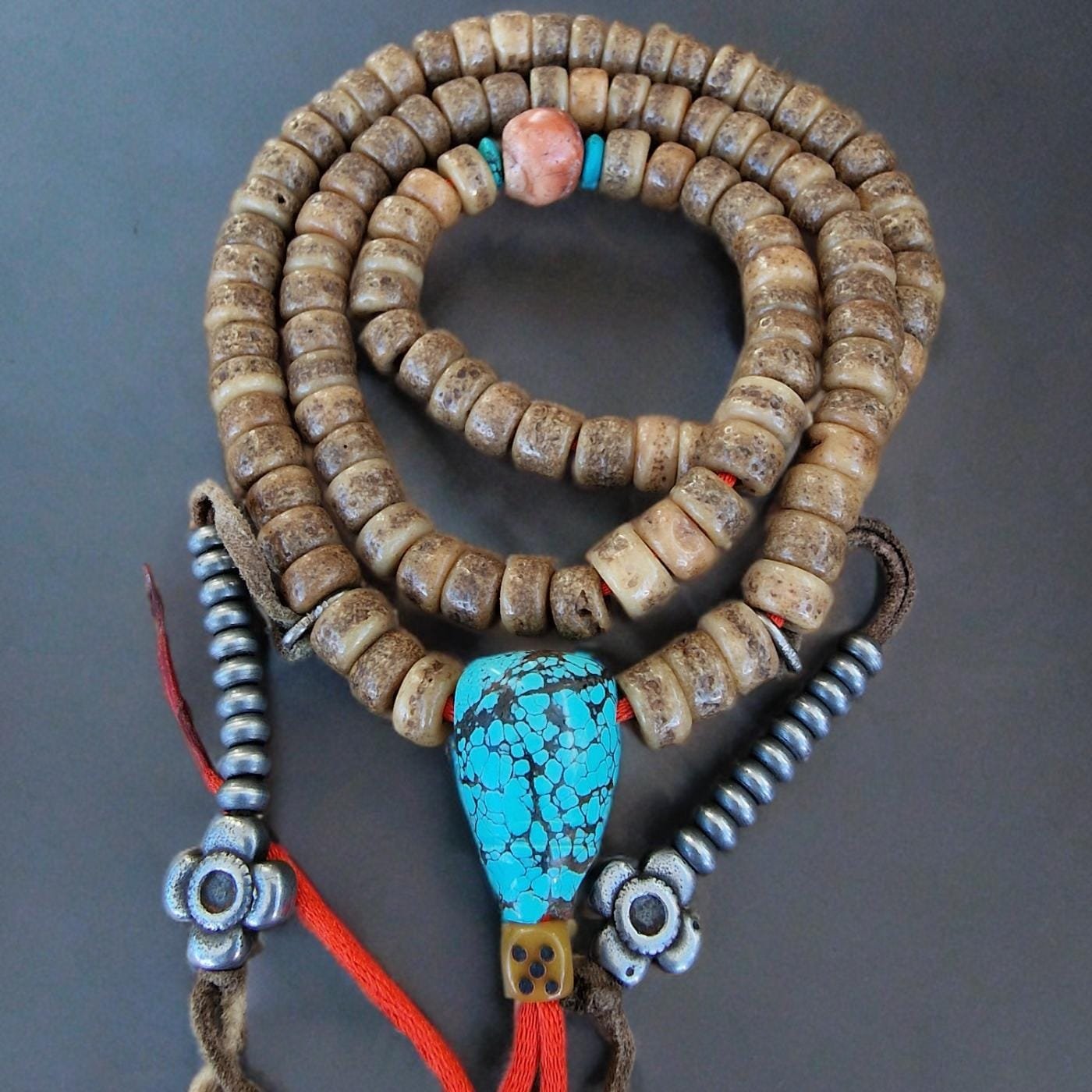 Tibetan antique Kapala 108 beads /Necklace | Prayer beads, old bodhi mala, antique Coral, Dzi beads, Tibetan Turquoise, Special Gifts