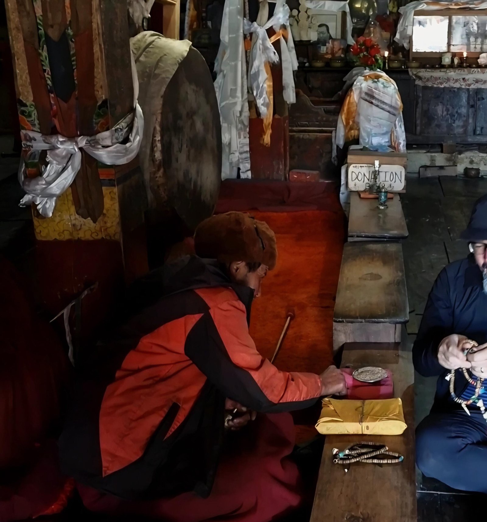 The body is understood as an empty vessel once consciousness has departed. Sky burial reflects the Buddhist view that form is transient, while awareness continues. Materials recovered after this process — including skull bone — were sometimes used by monks for ritual objects, not as relics of death, but as tools for awakening and considered a sacred continuation of practice.