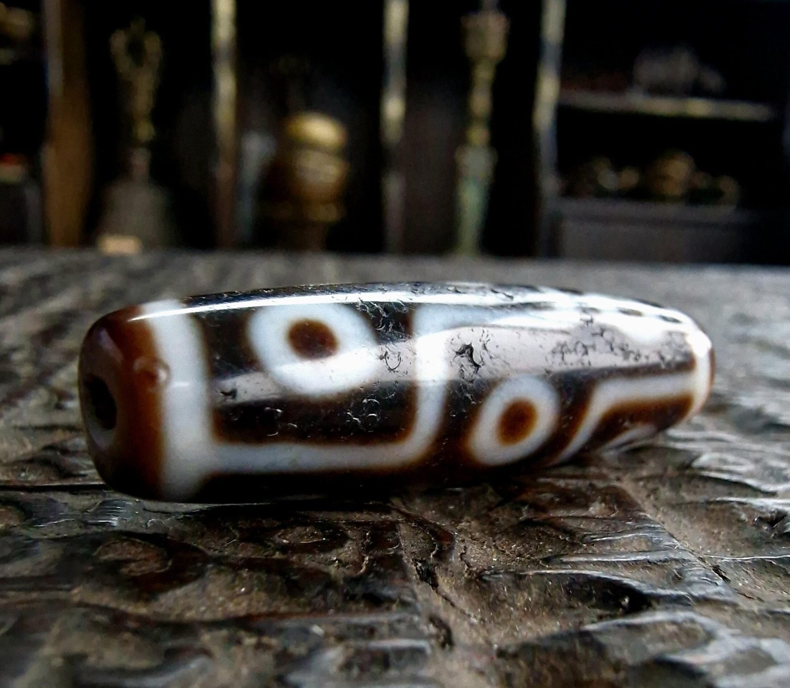 Such wear is expected and desirable in Tibetan dzi beads.