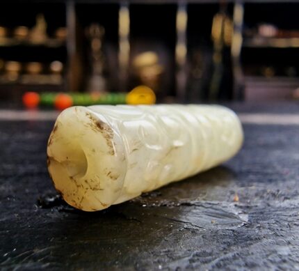 Symbolism and Use ◇ Pemaraka is highly valued in Tibetan culture, often associated with a person’s life force and blood. It’s thought to offer strong protection and bring good fortune. ◇ The bead’s worn-out shape is a testament to its spiritual journey and the many hands that have held it. It can be worn as a personal amulet or added to a collection of significant pieces.