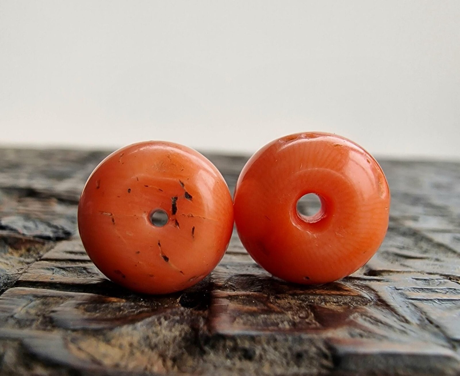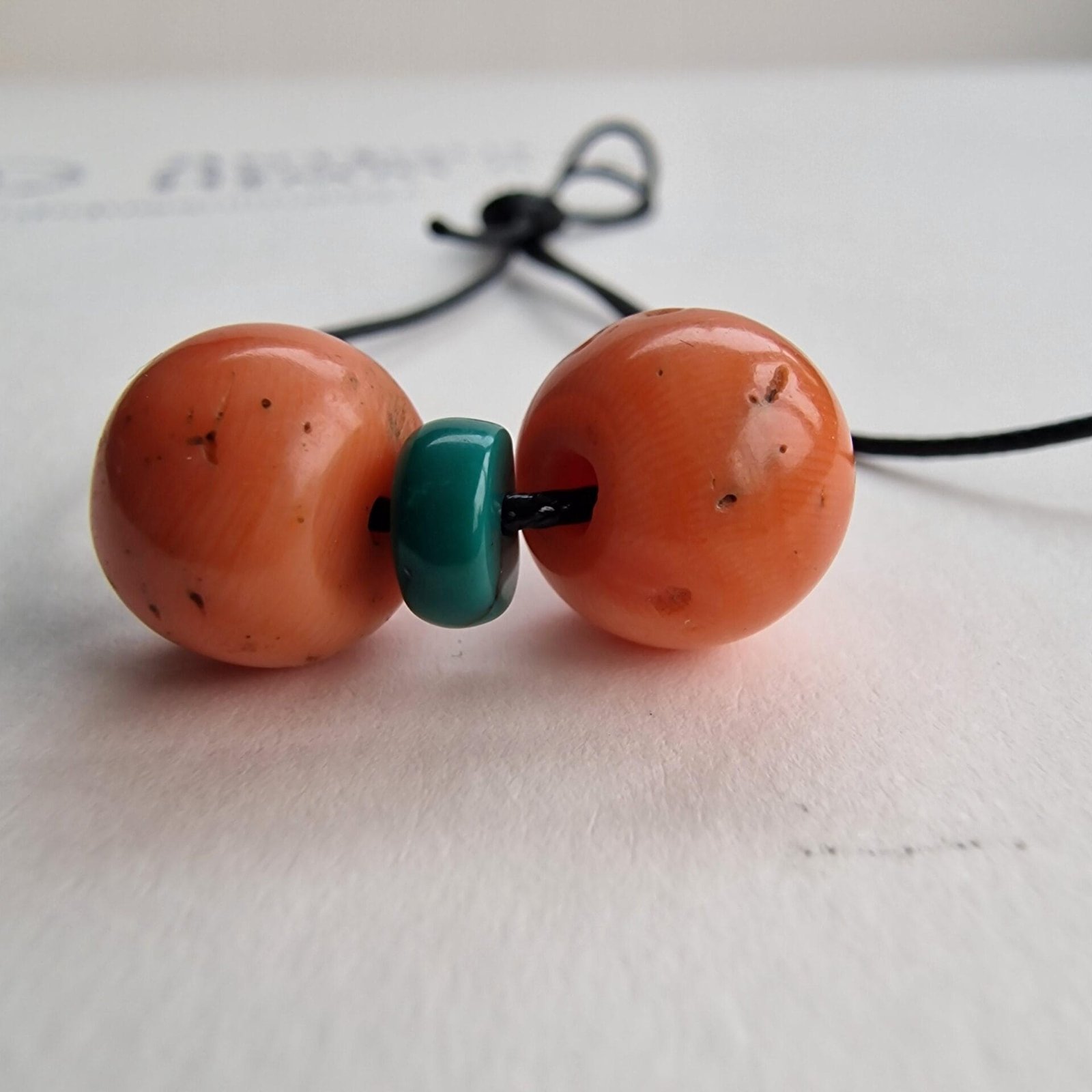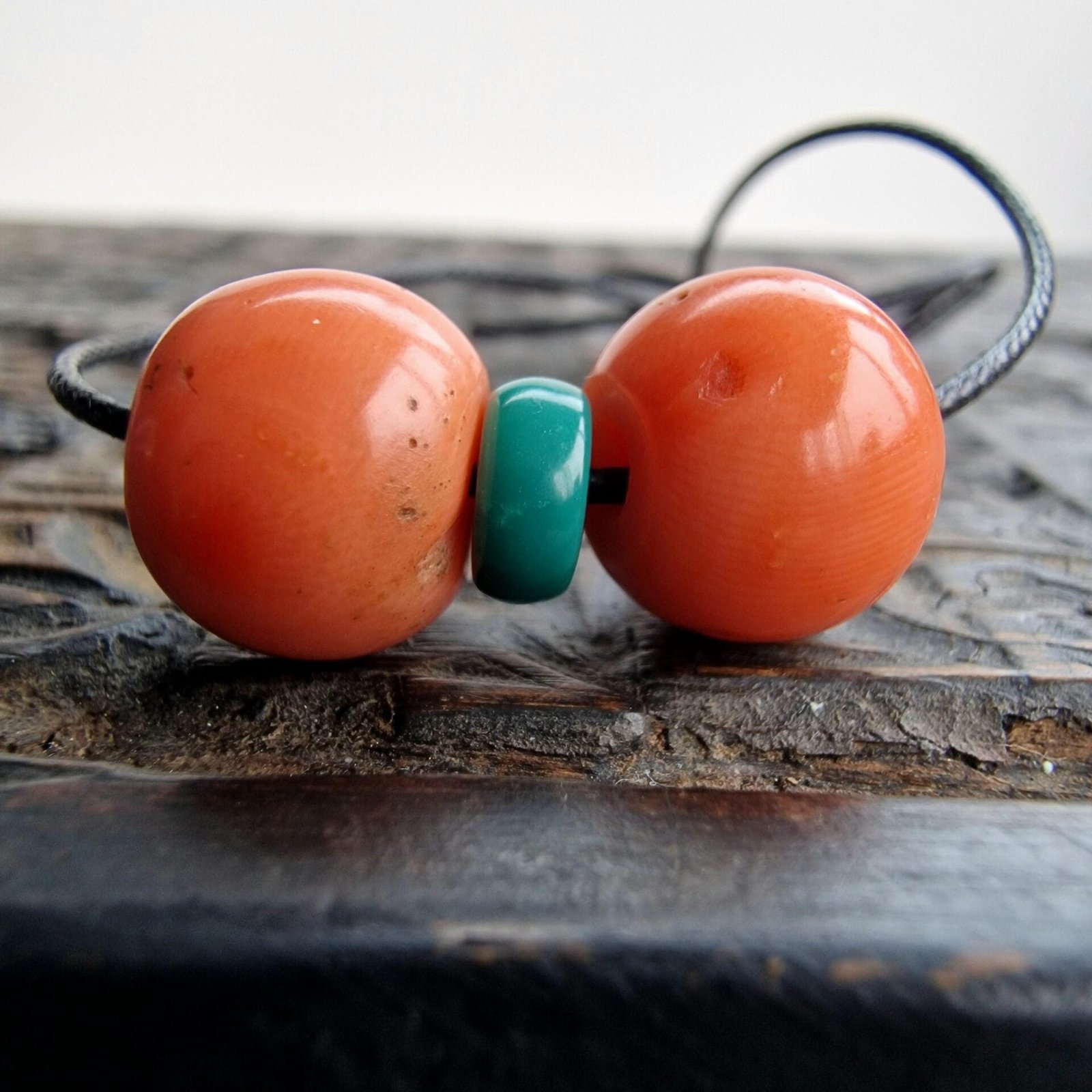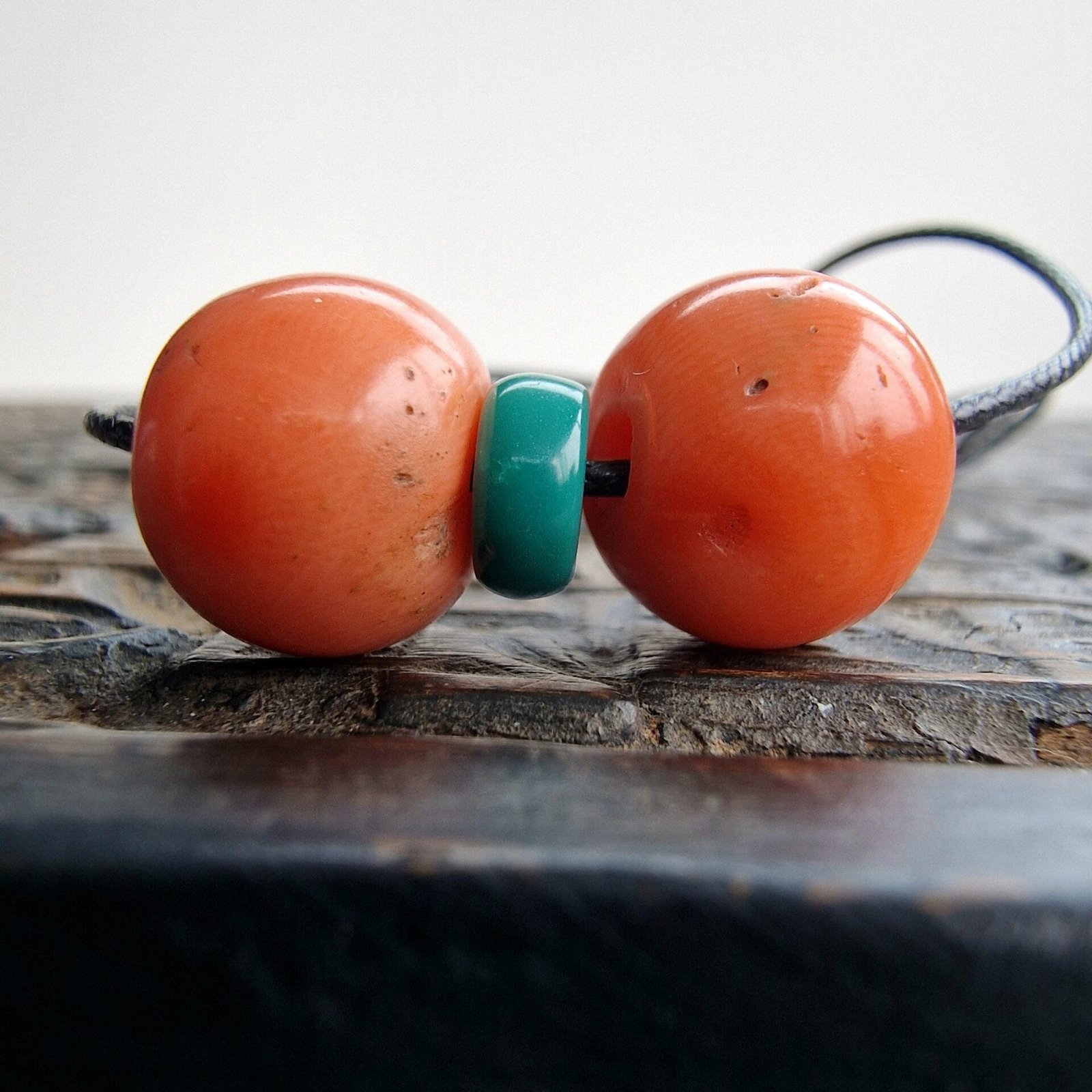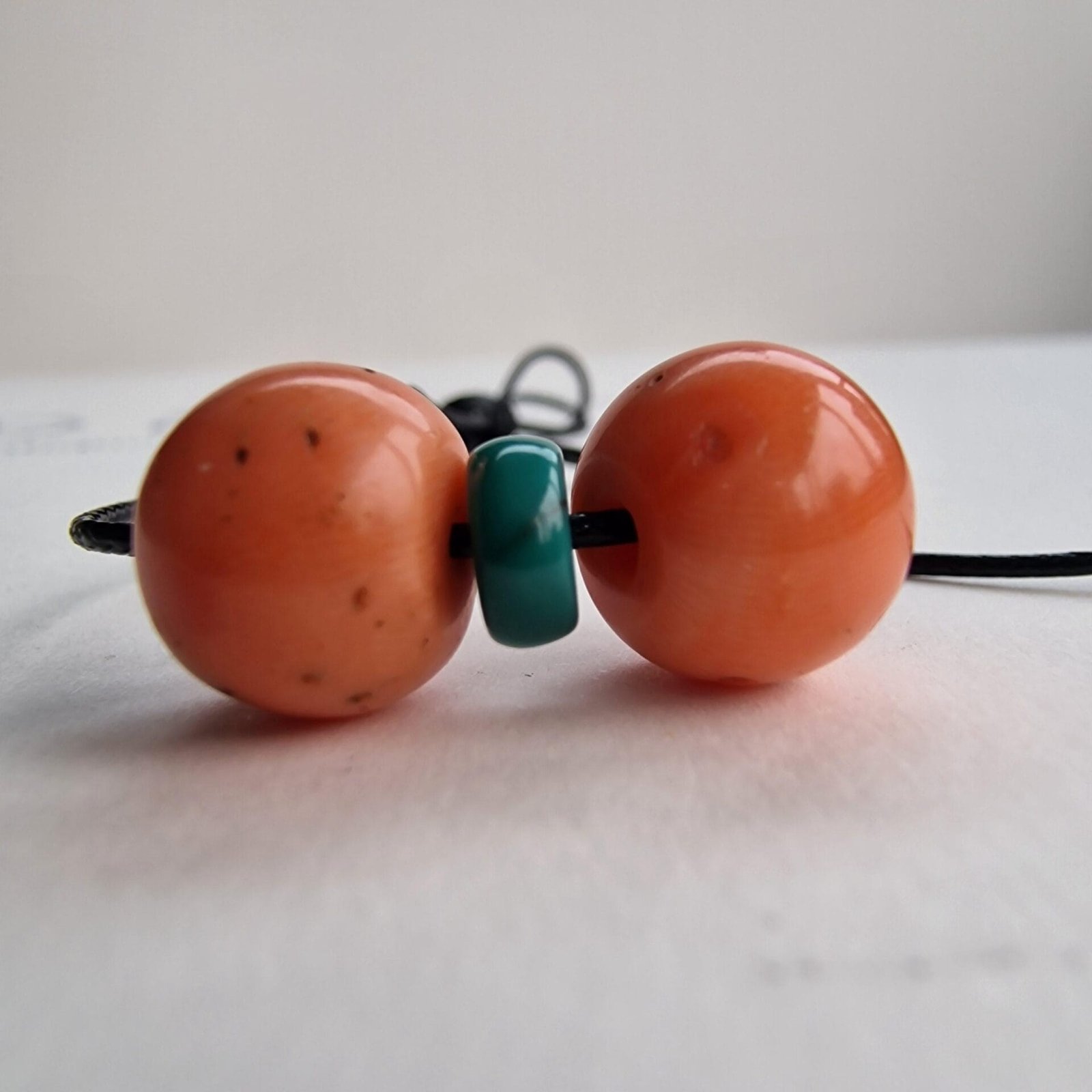 This pair features 100% genuine, natural red coral beads — light in colour, ready to wear as a meaningful amulet pendant or add to mala or high energy string of beads