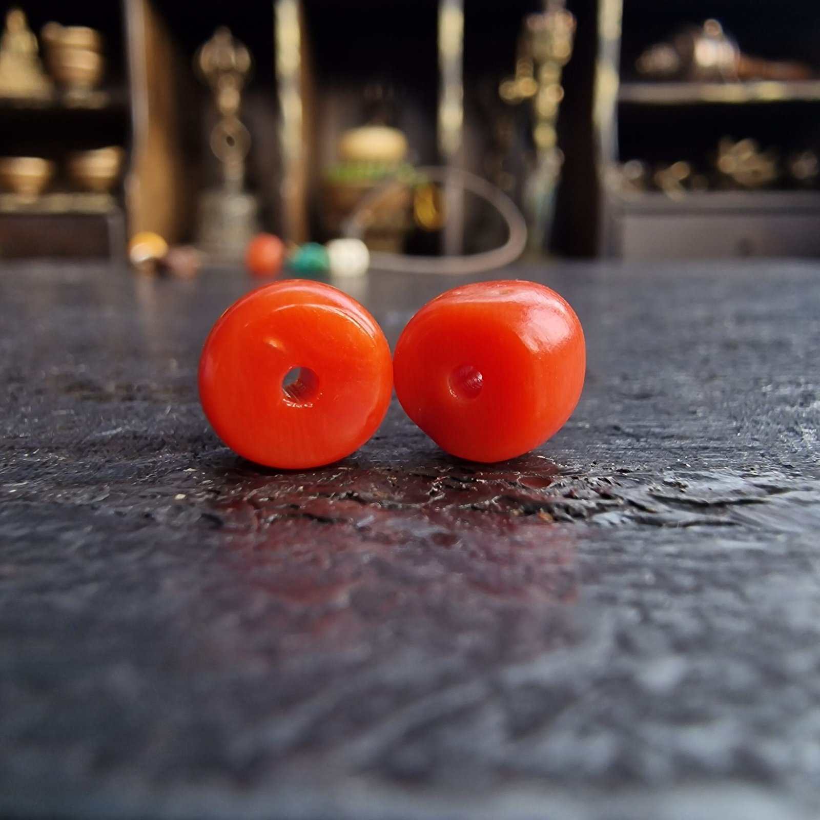 Own a piece of Tibetan spiritual heritage with this exquisite pair of deep red coral beads. Whether you use them for meditation, as part of a mala, or as a beautiful addition to your collection, these beads offer both spiritual benefits and historical significance.