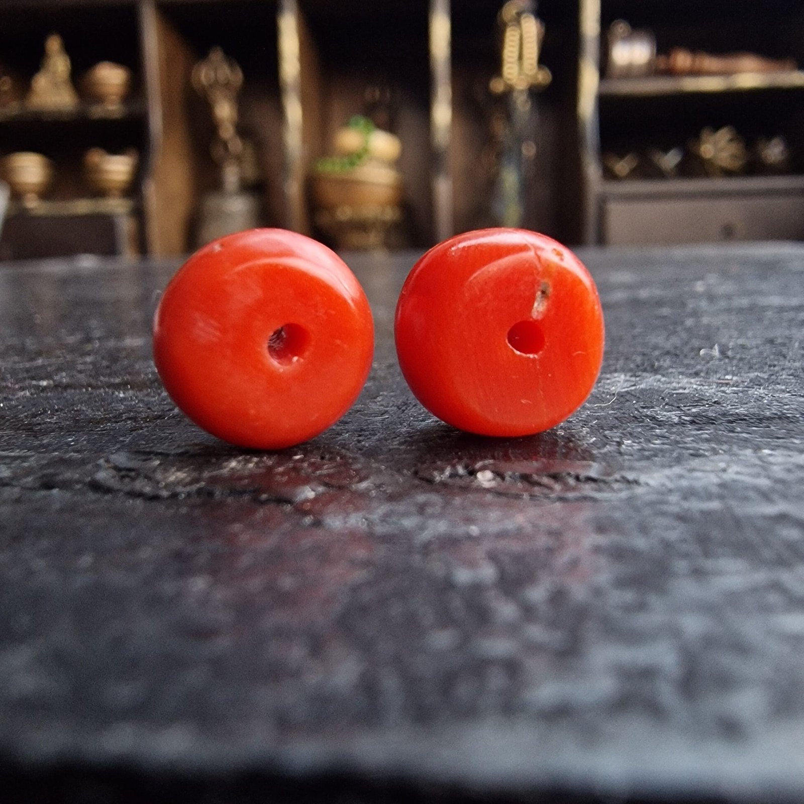 Own a piece of Tibetan spiritual heritage with this exquisite pair of deep red coral beads. Whether you use them for meditation, as part of a mala, or as a beautiful addition to your collection, these beads offer both spiritual benefits and historical significance.