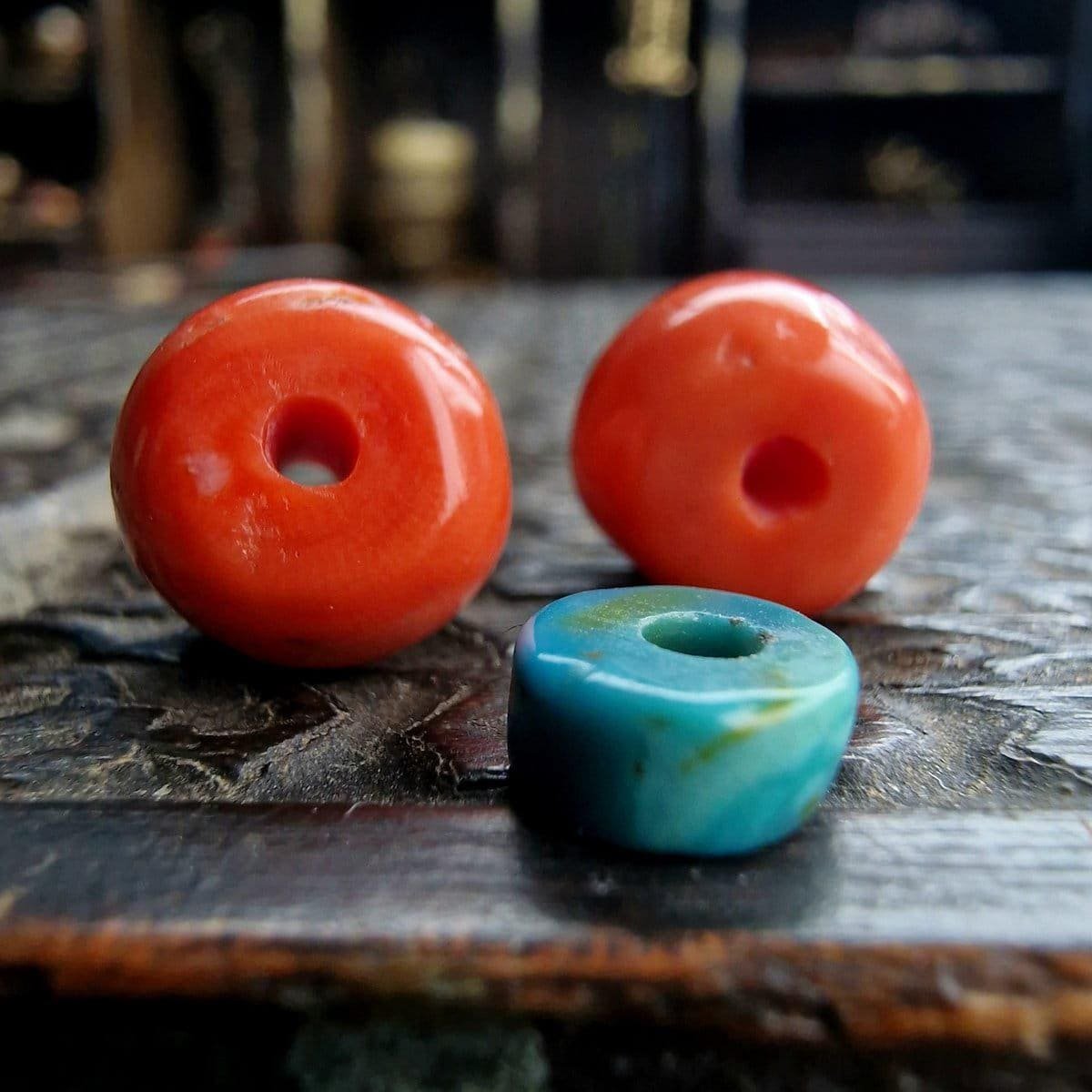 Beads that combine coral and turquoise are especially prized due to their sacred symbolism and rarity. The drum shape adds further uniqueness, making this a highly collectible artefact for both jewellery and spiritual collections.