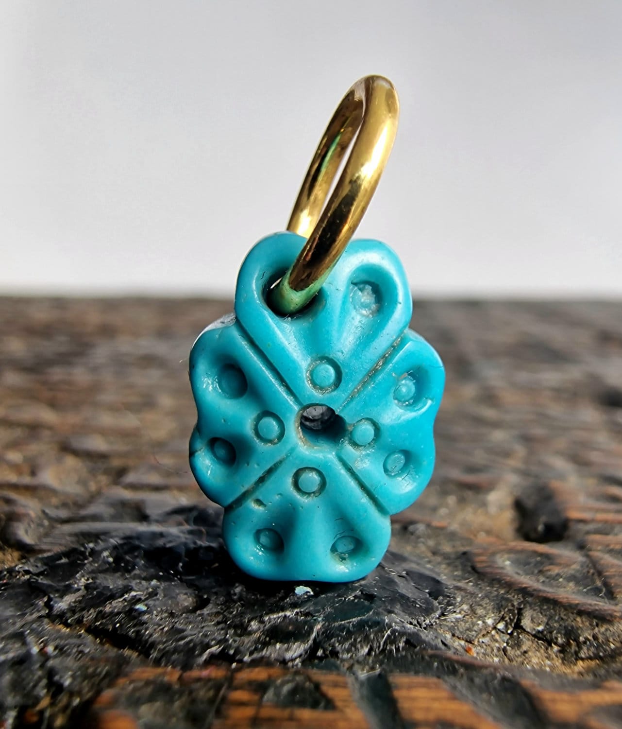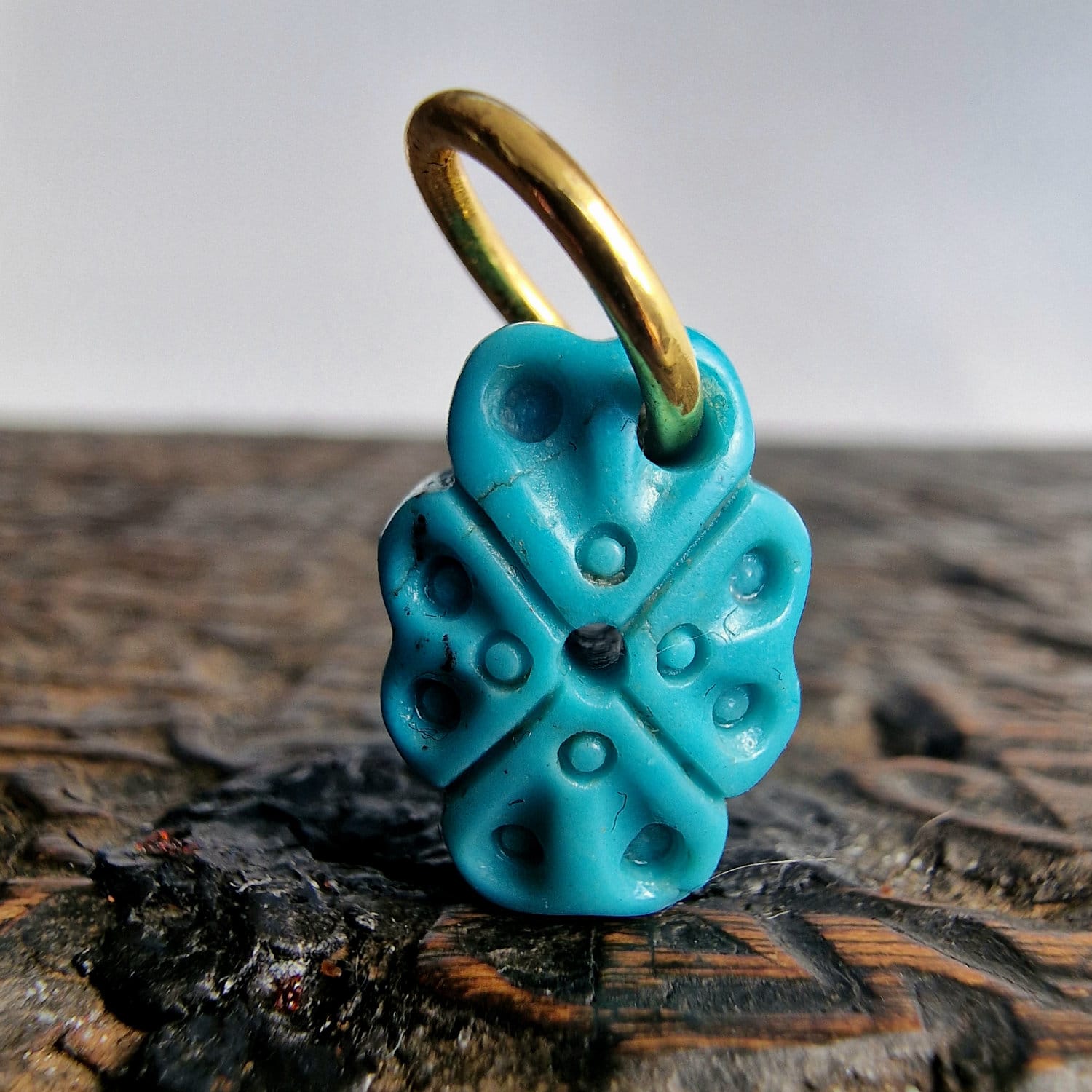 Natural Turquoise 4 leaf Clover Pendant| Hand Carved Wealth Charm| Tibetan Style| Real Gemstone| Zen Jewelry| Unique Gift| Gold Plated