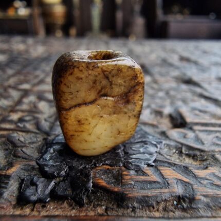 Sourced personally during my travels through the sacred trade routes of Tibet, this conch shell mala is a testament to the “white treasure” of the East. In the landlocked Himalayas, conch shells are among the most sacred materials, symbolizing the reach of the Buddha’s teachings. These 108 beads have been moved through the fingers of practitioners for generations, resulting in a deep, waxy luster and softened edges that can only be achieved through decades of authentic ritual use.