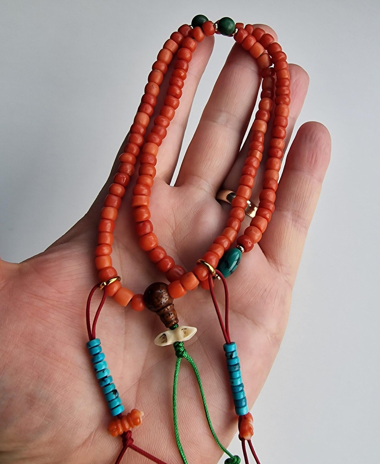 📿 Antique Tibetan Coral & Turquoise prayer beads Mala – 108 Prayer Beads
