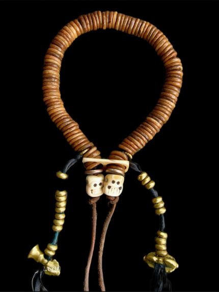 Immerse yourself in the rich spiritual heritage with our exquisite antique kapala mala bracelets from the 19th century. This stunning piece showcases the fusion of ancient craftsmanship and genuine amber, creating a truly remarkable artifact. With its superb condition and meticulous preservation, this Kapala is a testament to its enduring beauty and historical significance.