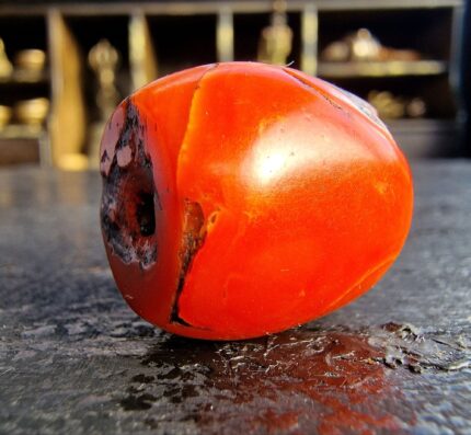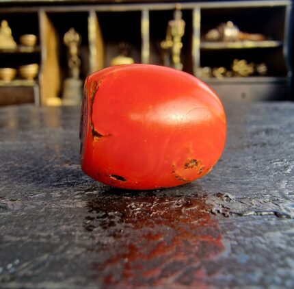 This crowned coral Chitipati bead is an extremely rare artifact of Tibetan heritage. Don’t miss the opportunity to own a truly powerful and unique piece.
