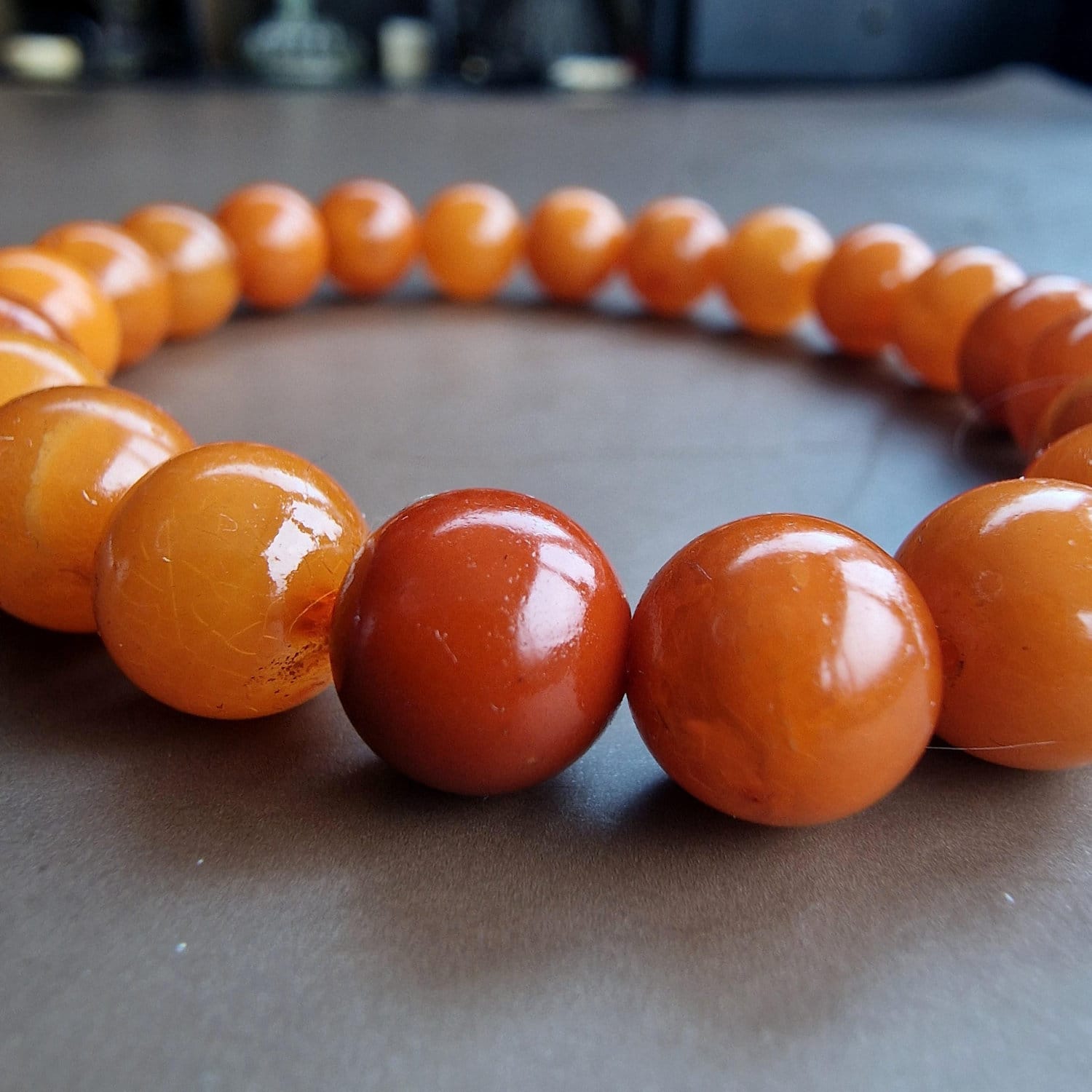 * The beads showcase a stunning range of natural colors, primarily featuring creamy egg yolk and rich dark sugar tones.