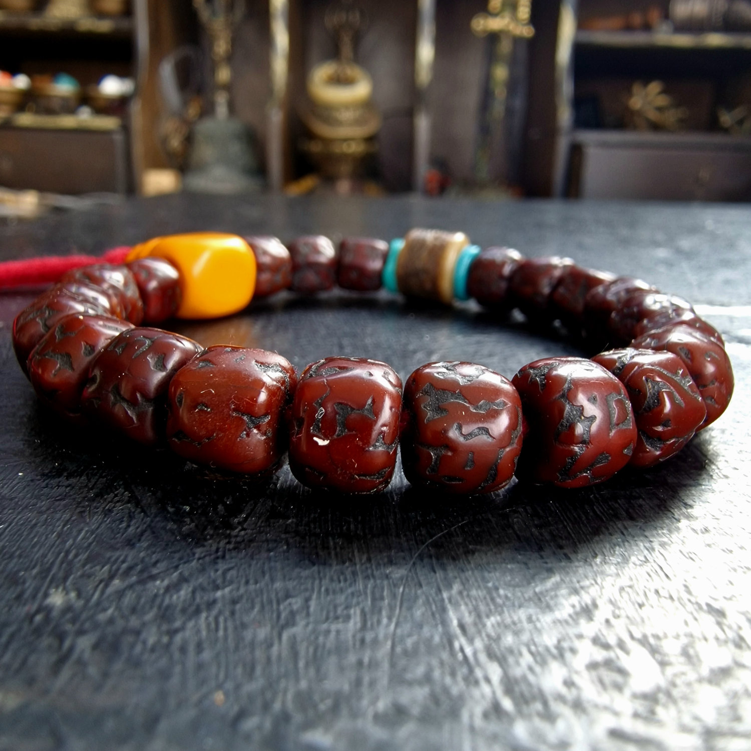 ◇ This is a powerful, unique Tibetan bracelet that combines the auspiciousness of Rudraksha beads with the potent symbolism of the skull (Kapala).