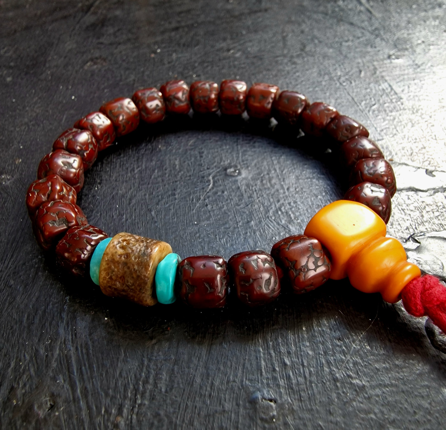 📿 Antique Tibetan Rudraksha and Kapala Bracelet