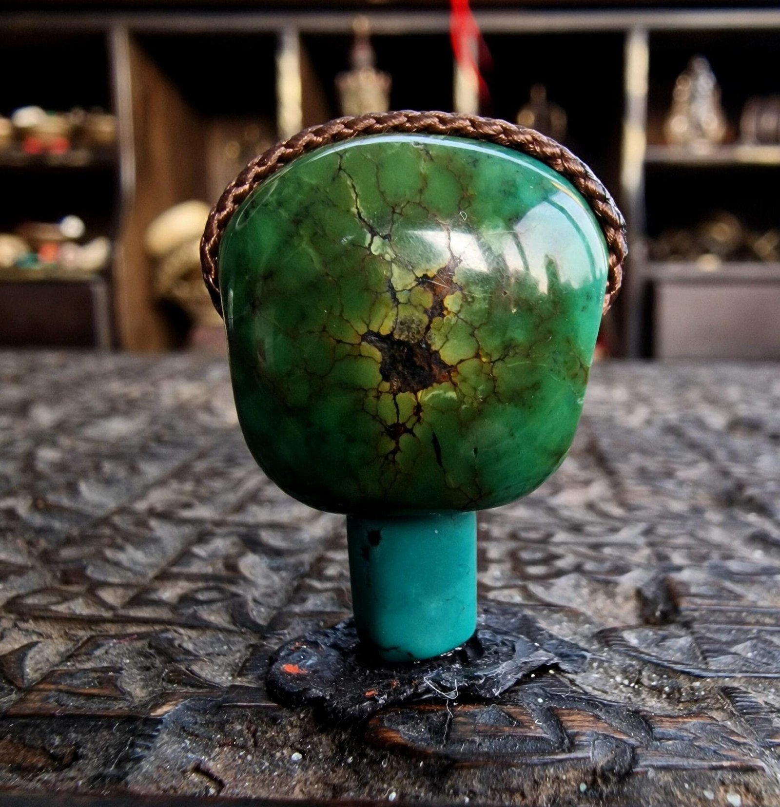 * This is a superb, high-density Tibetan Turquoise Guru bead, hand-carved in the Himalayas of Nepal and Tibet.