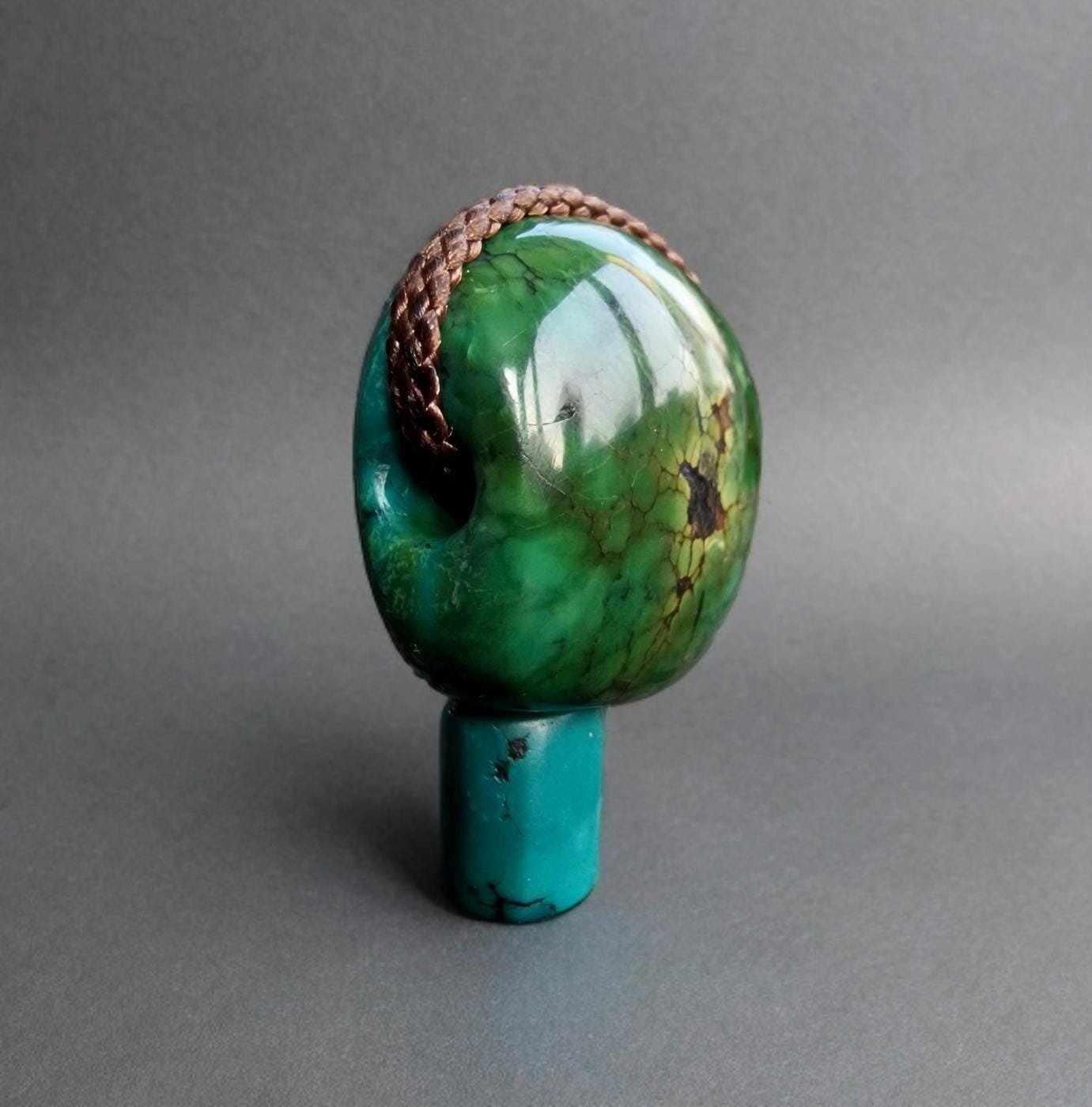 ◇ This 20th-century Tibetan turquoise bead is a masterpiece of natural beauty.