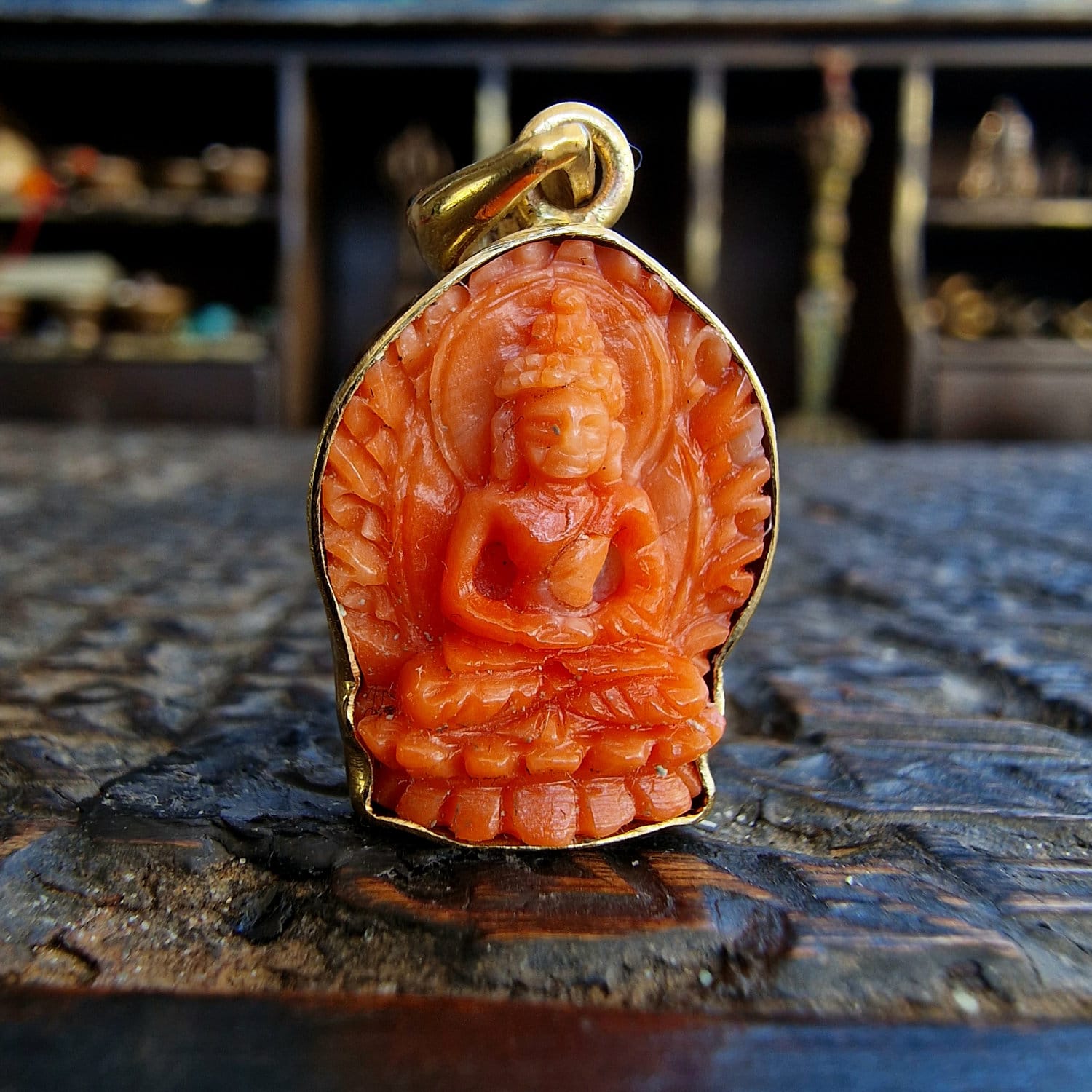 Tibetan Coral Buddha Shakyamuni Amulet – Hand-Carved Traditional Protector A radiant companion for the journey toward inner peace