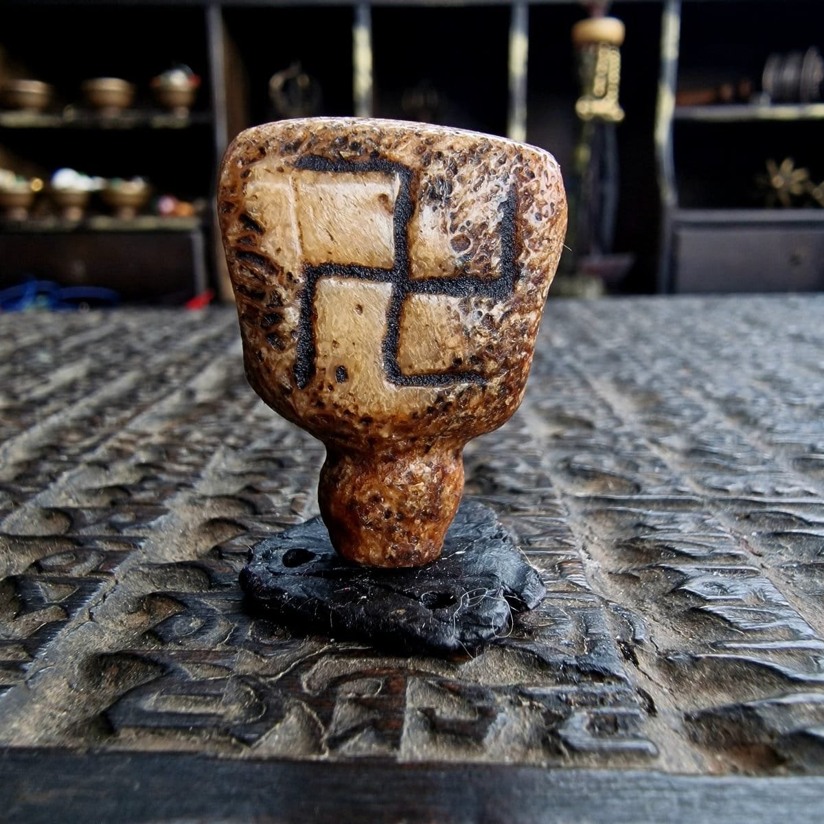 Highlights: Buddhist swastika design, lama bone, sacred ritual use, rare collectible