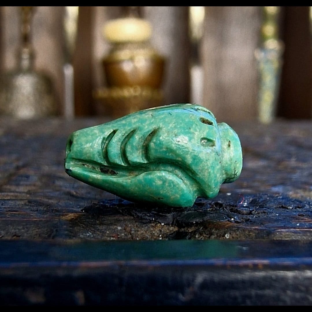 Tibetan Turquoise Conch Bead – Antique Hand-Carved Ritual Amulet A silent call to awakening and spiritual sovereignty