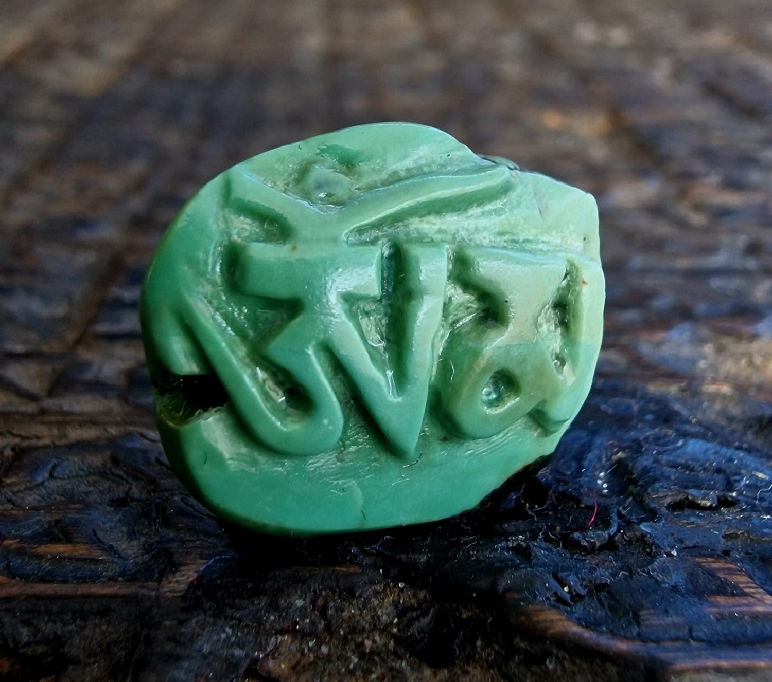 Tibetan Turquoise Om Mani Carving – Antique Hand-Carved Mantra Stone A resonance of compassion carved in Himalayan stone
