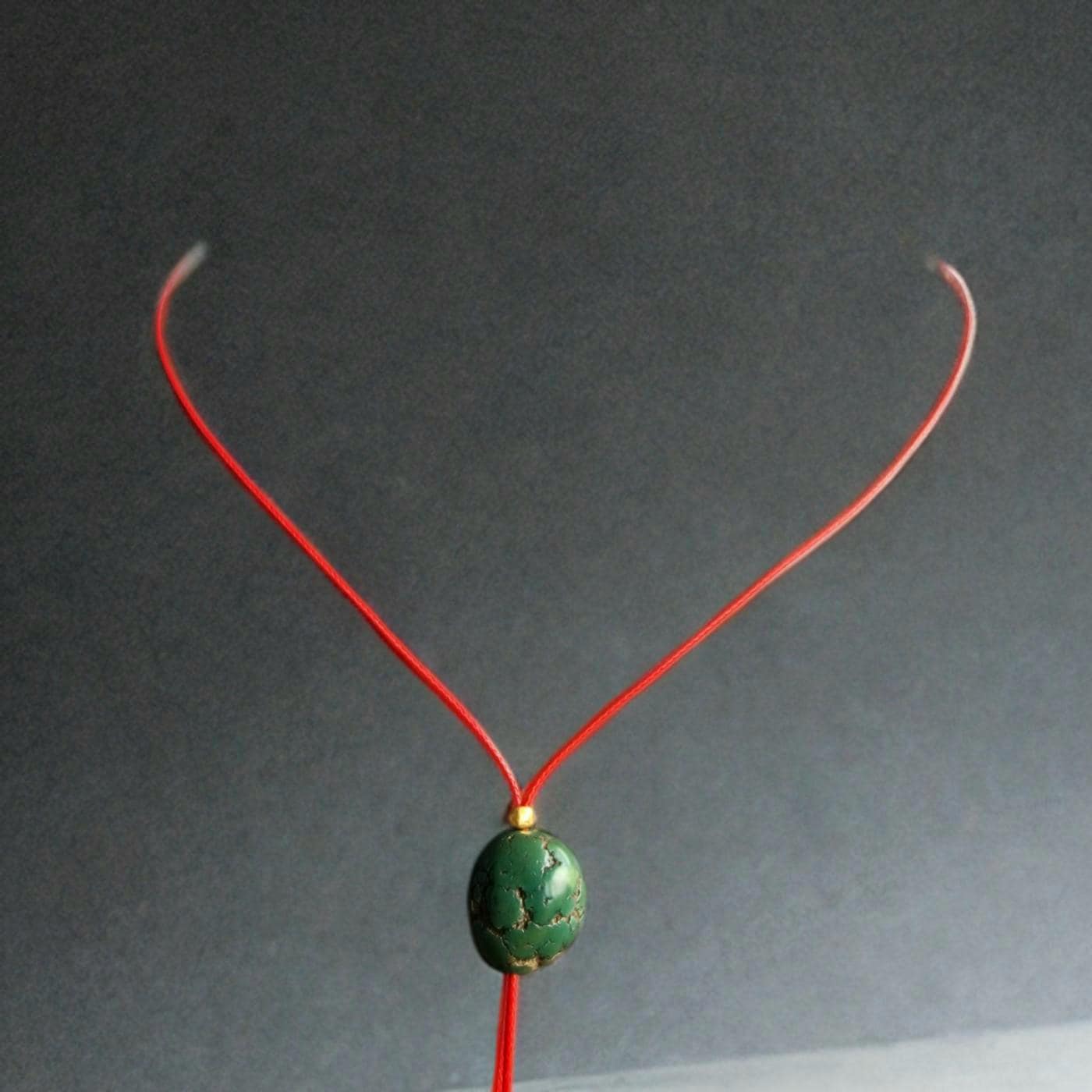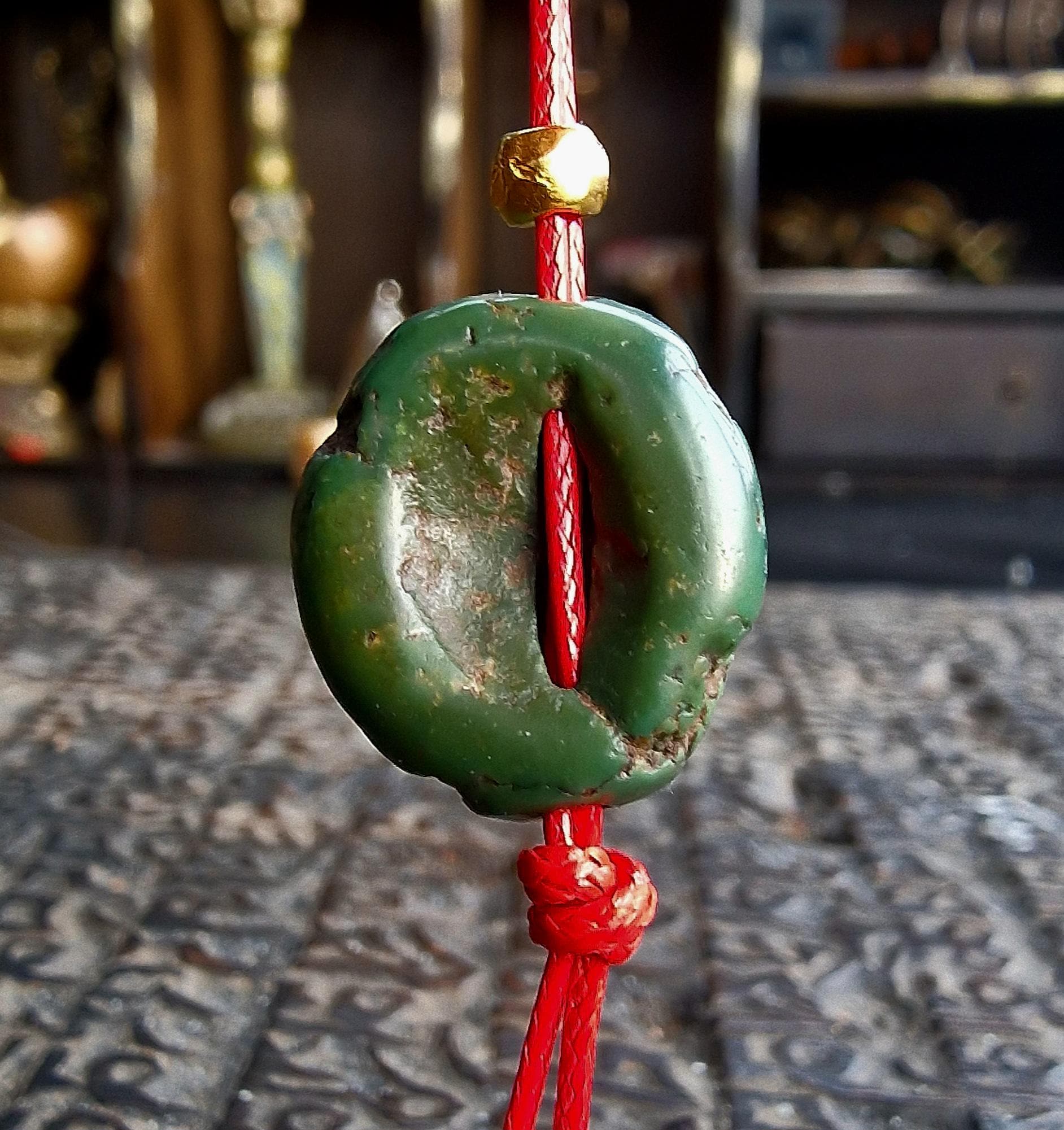 * The bead is finished with a handmade antique 20-carat solid gold bead and mounted on a vibrant red ritual cord.
