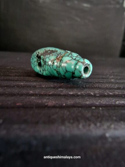 Turquoise has been revered in Tibetan Buddhism for centuries, used in malas, amulets, and sacred jewelry. It is believed to absorb the energy of the wearer, becoming more vibrant over time. This bead is part of that tradition, passed down through generations.