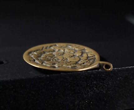 Measuring 58mm x 56mm, this Thogchag allows for a closer exploration of its intricate details. The craftsmanship is evident in the meticulous rendering of the Vajra and Yak Head, capturing the essence of their symbolism and spiritual significance. Every curve and line evokes a sense of reverence for the ancient traditions that have been preserved through this remarkable artifact.