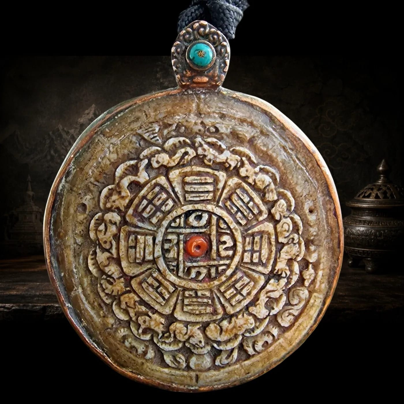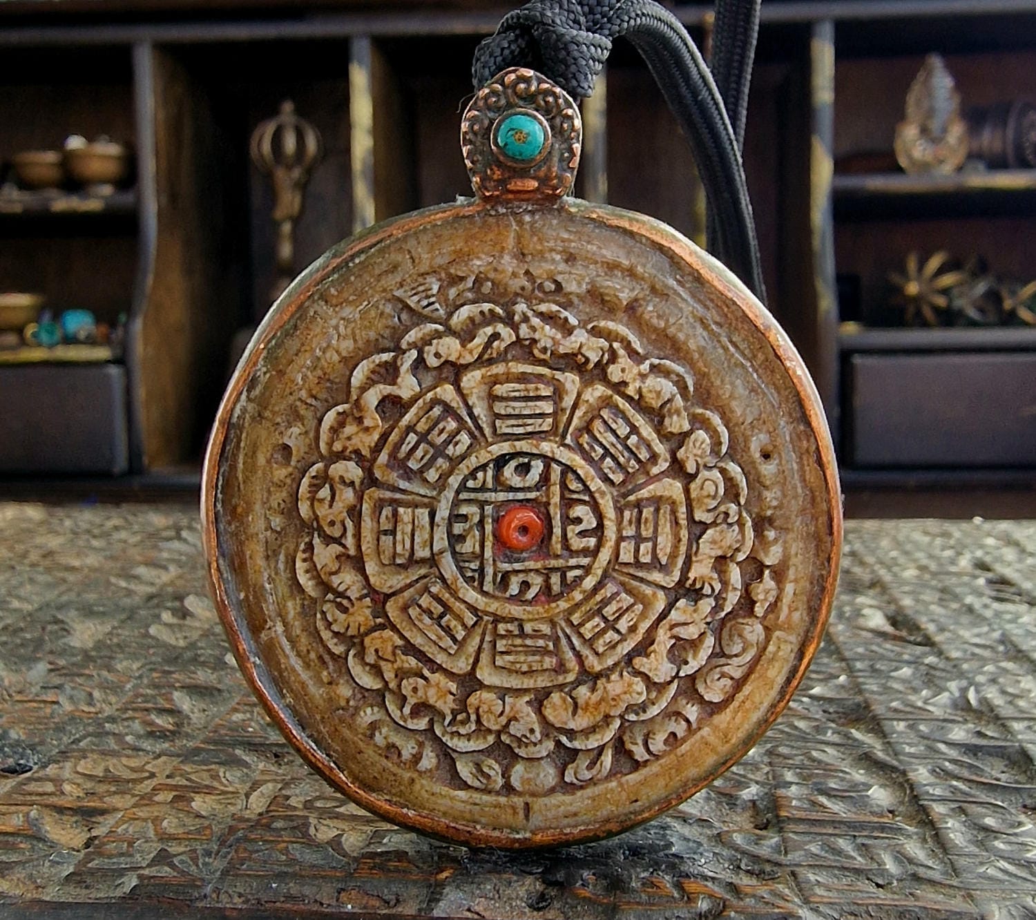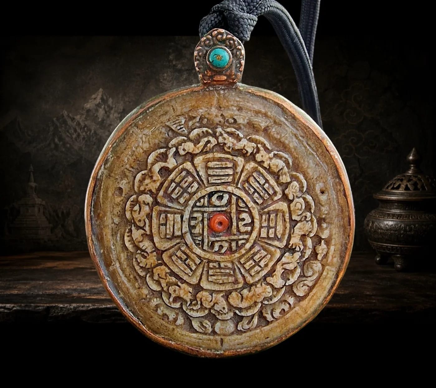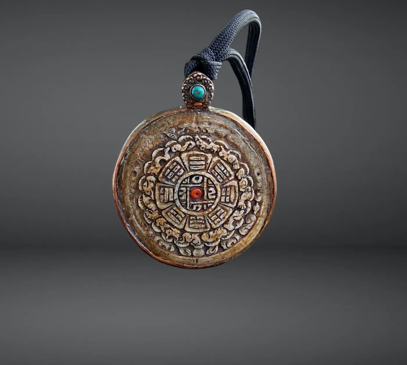 Step into centuries of Himalayan wisdom with this profoundly carved, Lama-blessed Kapala calendar amulet that anchors the mind and invites indestructible energy.