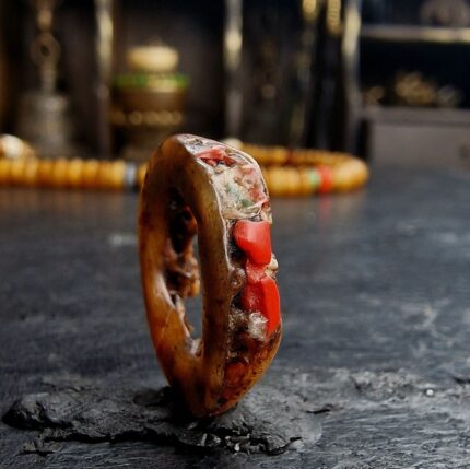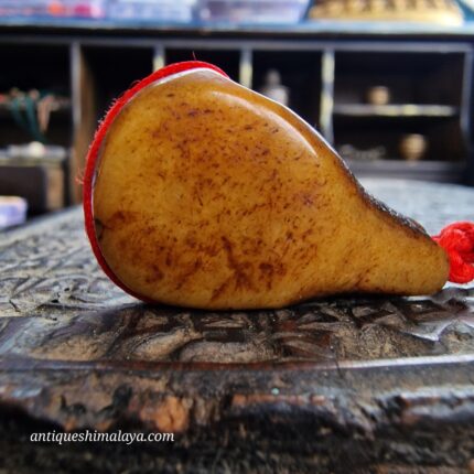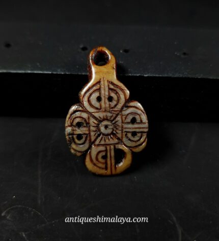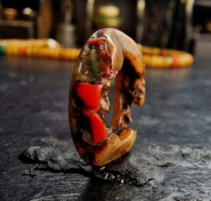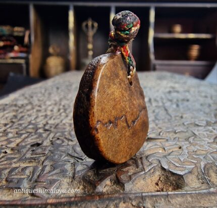 - Sourced personally during my travels through the ancient monastic strongholds of the Himalayas, this Kapala Crown amulet is a relic of the “Higher Tantras.” In Tibetan Buddhism, the crown of five skulls is worn by wrathful deities and advanced practitioners to signify the conquest of the five kleshas (negative emotions). This piece has been hand-carved with intense precision and has aged to a beautiful, waxy, honey-toned patina over a century of ritual use. It is a striking symbol of spiritual authority and the victory of the mind over worldly delusion.