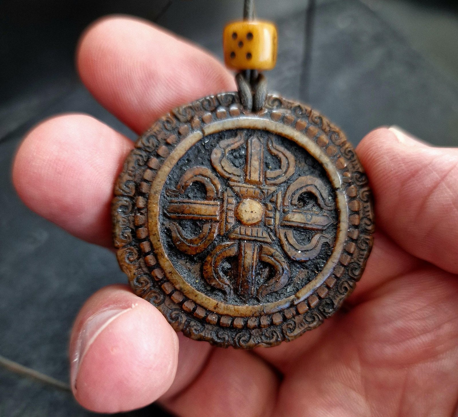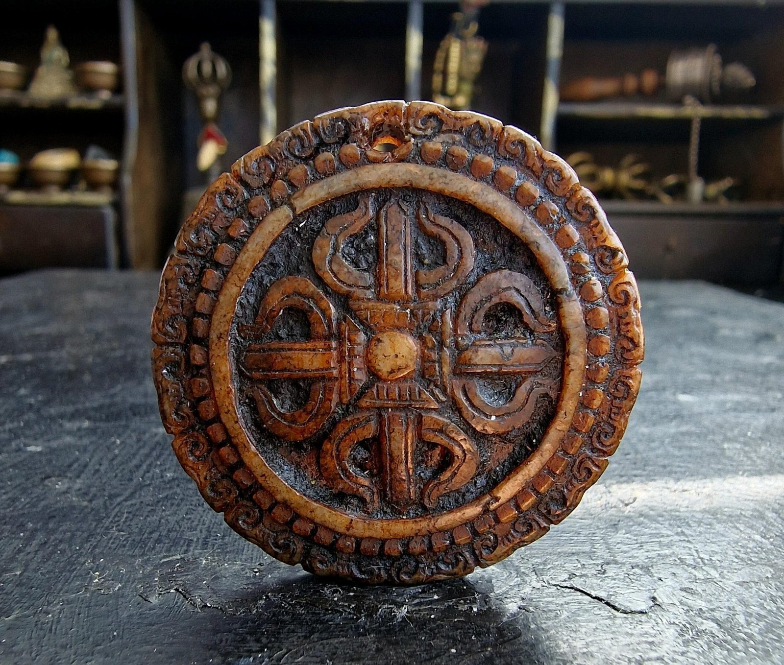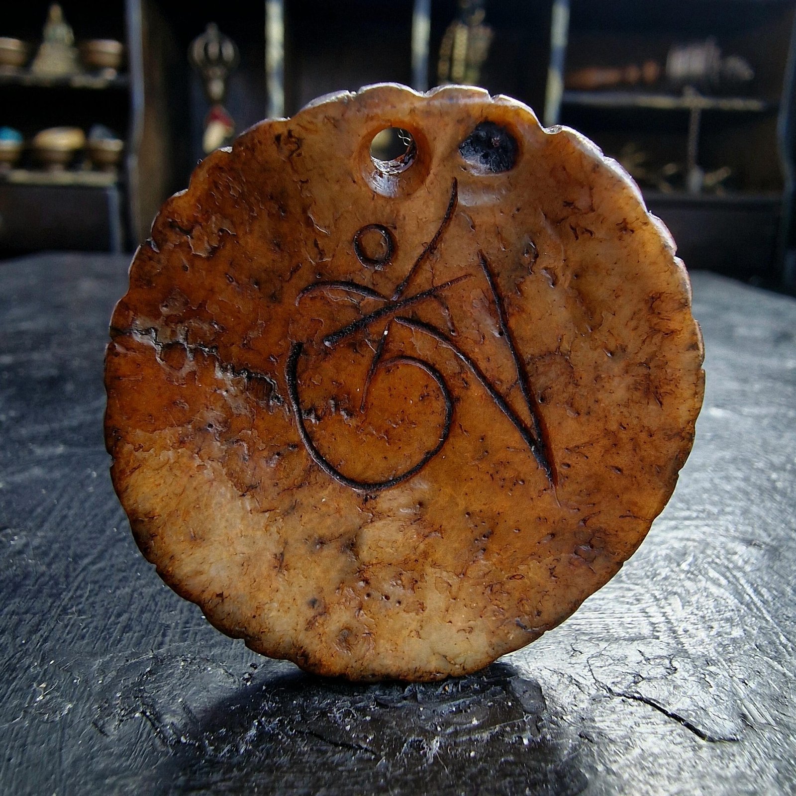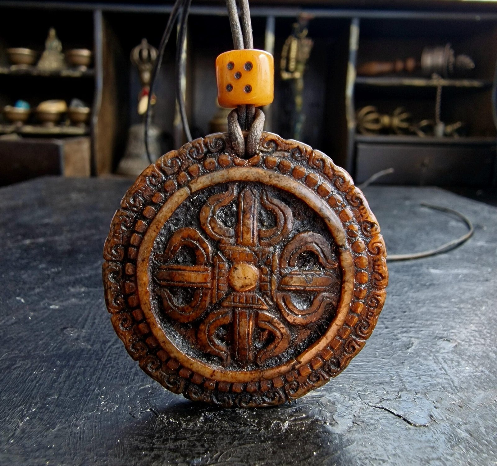 * This is a superb and rare antique Kapala amulet, hand-carved from sacred bone in the Tibetan tradition.
