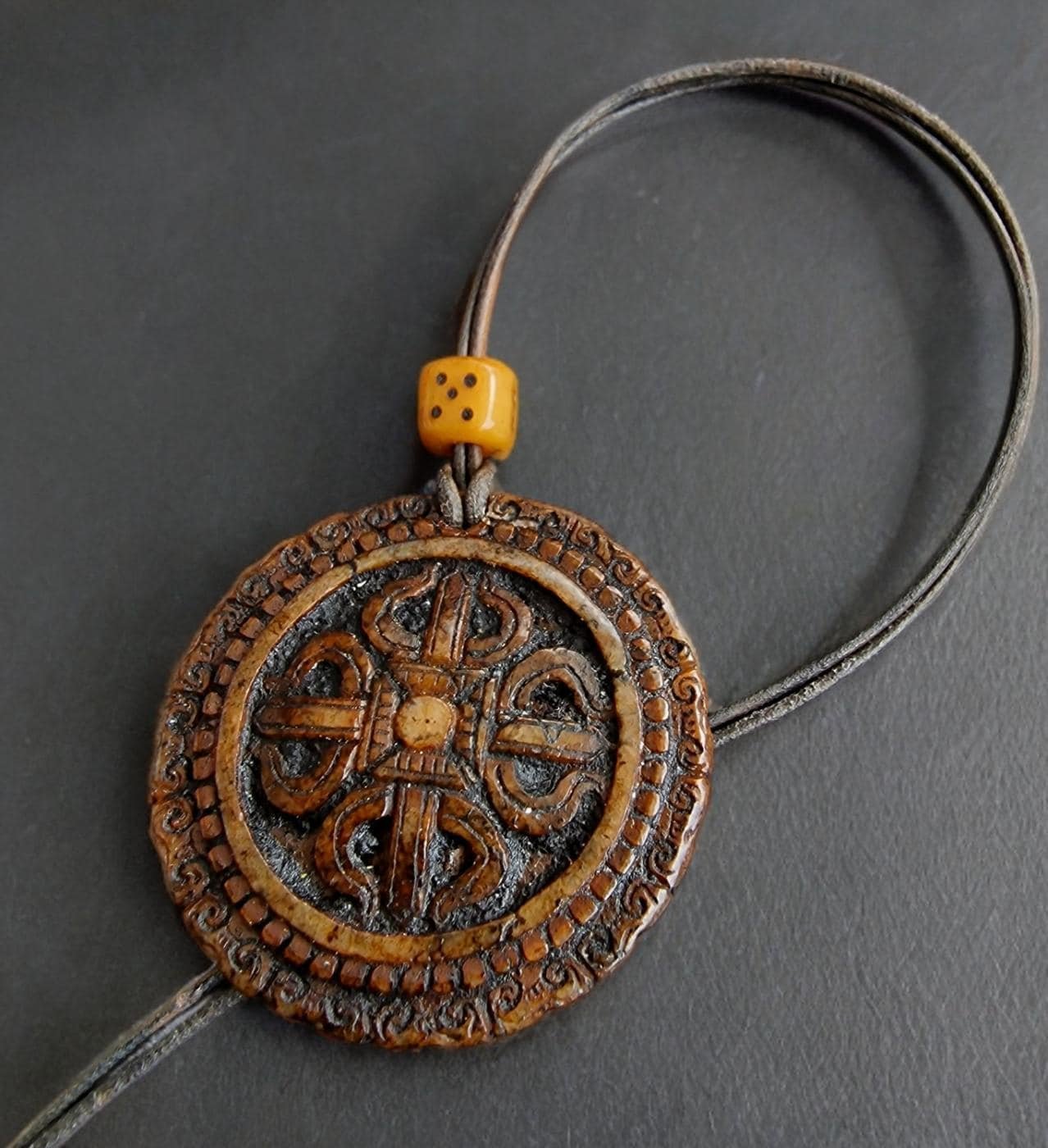* The amulet is finished with an antique yak bone dice spacer and is mounted on durable leather strings.